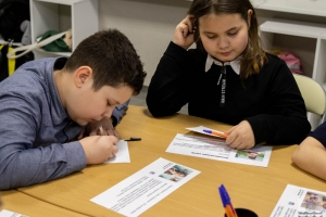 В этот день учащиеся 4В класса школы №3 (корпус А) стали добропочтальонами и подписали открытки для особенных деток.