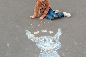 Ребята с большим удовольствием, применяя свои творческие способности, создавали различные картины, в которых сумели отобразить задуманное. На асфальте расцветали удивительные цветы, сверкала красочная радуга, взметнулись в высь горы, разлилась быстрая река со сказочными деревьями.
