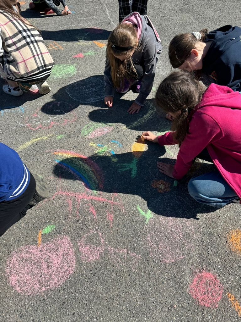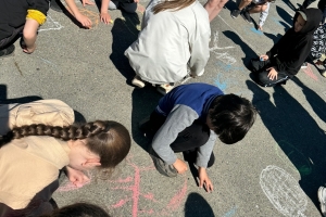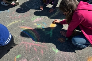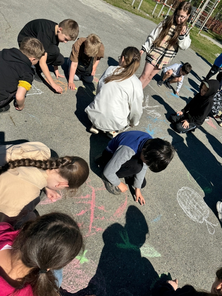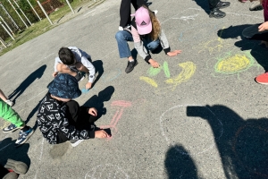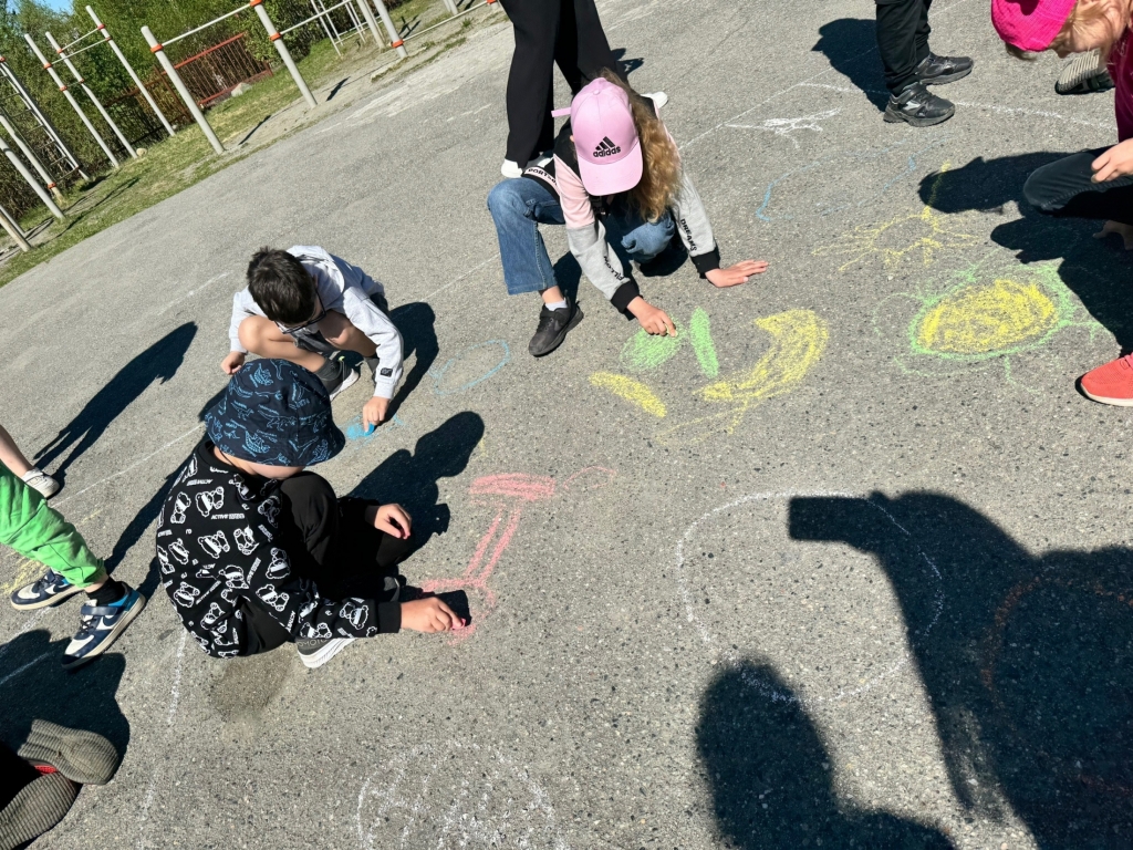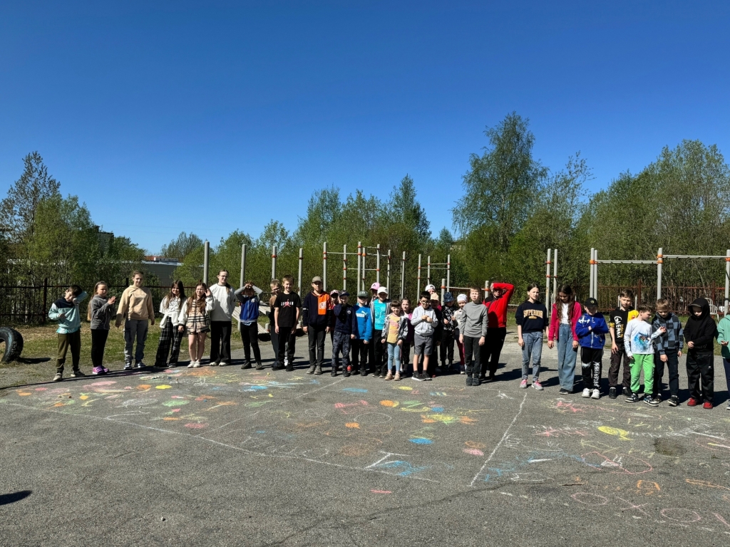 Ребята рисовали мелками на асфальте, выражая свою солидарность со здоровым образом жизни, спортом, правильным питанием, голосуя за активный отдых и правильный режим дня.