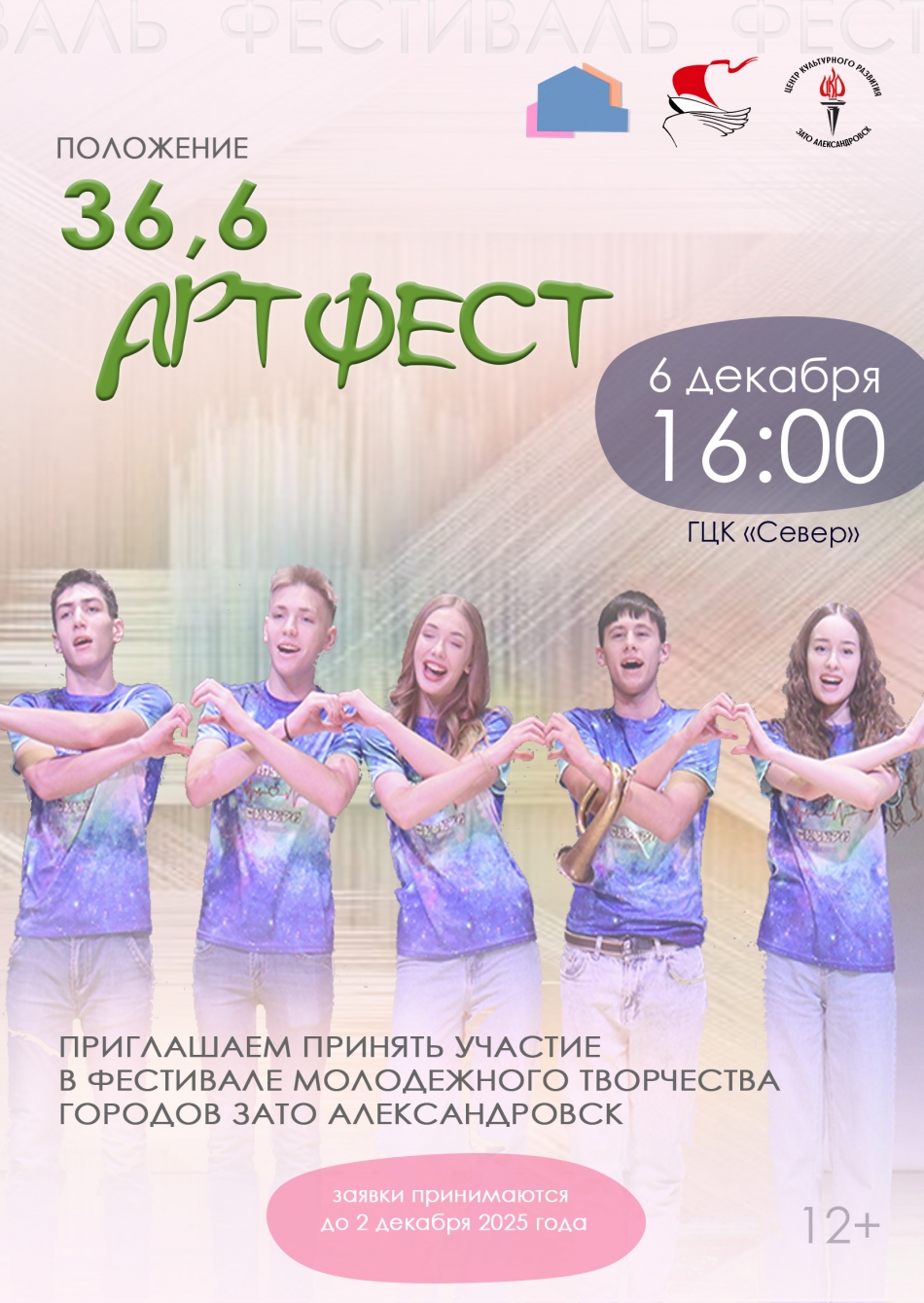 Если ты молодой, красивый, энергичный, любишь здоровый образ жизни, творчество и спорт, если ты приобщаешь к нему своих близких и друзей, то фестиваль молодежного творчества «36,6 АРТФЕСТ», в рамках декады «SOS!», который пройдет 6 декабря 2025года в ГЦК «Север», точно для тебя!