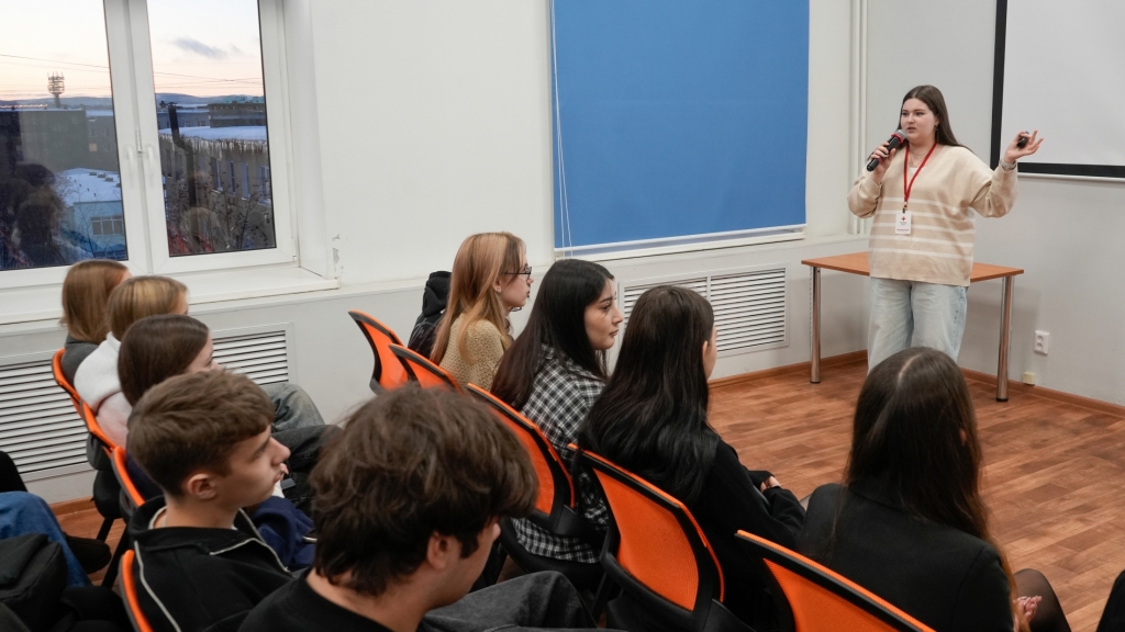 В начале декабря 2025 года специалисты Мурманской областной научной библиотеки совместно с врачом Мурманского областного медицинского центра Любовью Веселовой, волонтёрами-медиками Софией Одажиу и Касиет Нурдиновой, а также психологом Молодёжного центра профилактики МАУ МП «Молодёжь 51» Аленой Костылевой провели беседы о сохранении здоровья со студентами Мурманской академии экономики и управления, учащимися школ № 44, № 45, гимназии № 8, Мурманского педагогического колледжа, колледжа Мурманского арктического университета и индустриального колледжа.